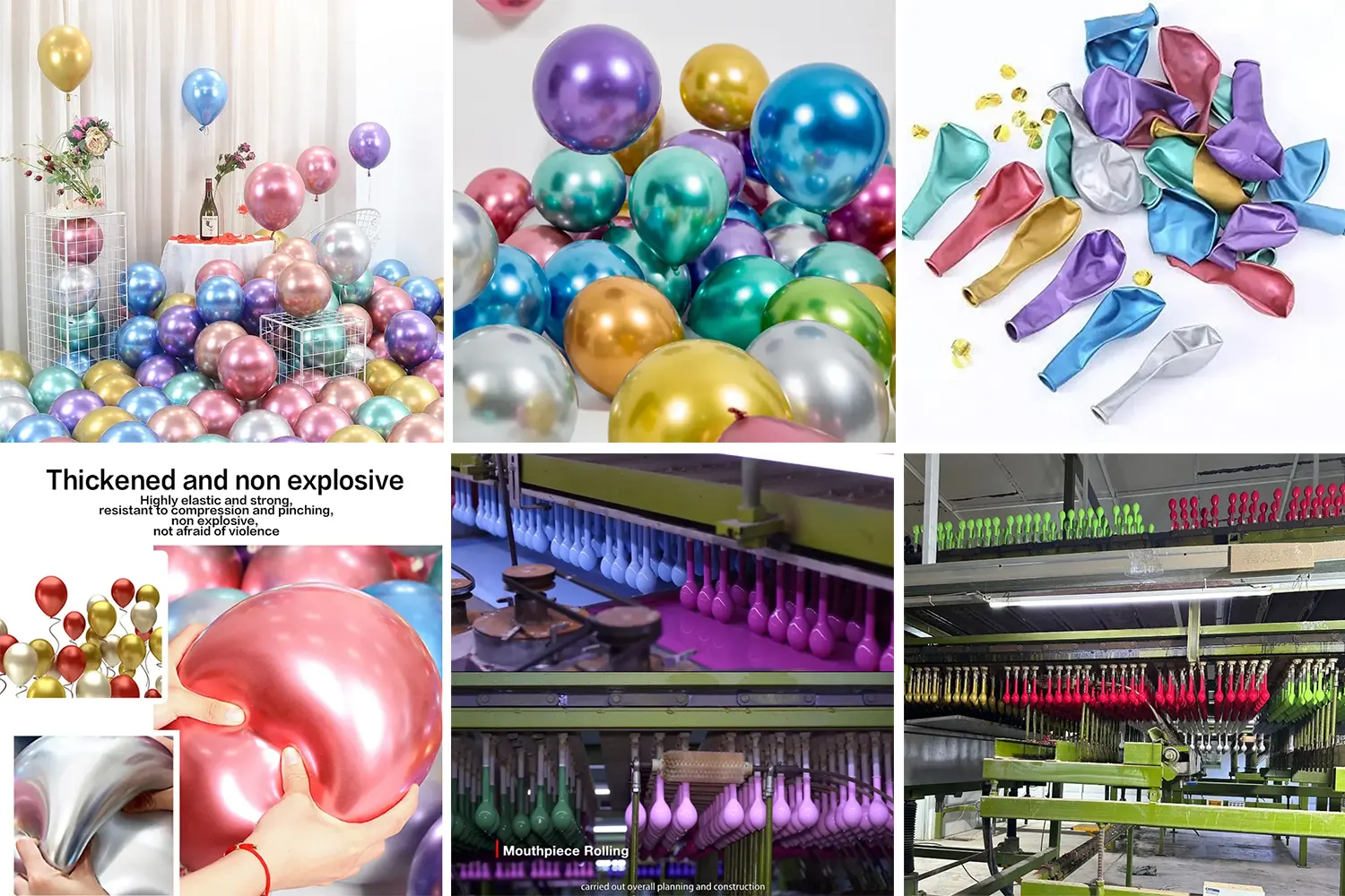 Nhà máy nổi tiếng: Áp dụng chế độ sản xuất hiện đại và đầu tư vào nhiều dây chuyền sản xuất khinh khí cầu hoàn toàn tự động, sản xuất hơn một triệu quả bóng cao su chrome chất lượng cao 10 inch mỗi ngày, đảm bảo hoàn toàn việc cung cấp các đơn đặt hàng có khối lượng lớn.