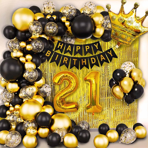 Bộ vòm vòng hoa bóng bay thứ 21: Bộ vòm vòng hoa bóng bay thứ 21 này có màu sắc chủ đạo là đen, vàng, bạc, v.v., rất phù hợp để trang trí nam nữ trong bữa tiệc sinh nhật lần thứ 21. Chúng có thể được treo trên cửa hoặc tường, đồng thời cũng rất thích hợp sử dụng trong nhà và ngoài trời để tạo nên một bữa tiệc sinh nhật lần thứ 21 độc đáo cho nam hoặc nữ.