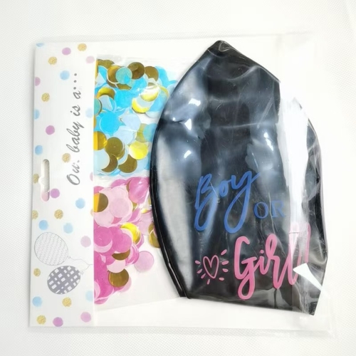 Đối vớiBong bóng tiết lộ giới tính 36 inchtrong kho, nó có màu đen mờ và có nhiều kiểu in, như hình ảnh nhân vật bé trai hoặc bé gái, bé trai và bé gái hoặc thứ gì đó khác liên quan đến bé trai và bé gái. Đối với hoa giấy, một túi là hoa giấy màu hồng với hoa giấy màu vàng lá, một túi khác là hoa giấy màu xanh với hoa giấy màu vàng lá.