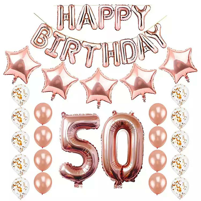 Bong bóng sinh nhật lần thứ 50 là vật trang trí độc quyền để kỷ niệm những khoảnh khắc quan trọng trong cuộc sống, bao gồm các vật phẩm bóng bay với nhiều kiểu dáng và màu sắc thời trang khác nhau, đồng thời có thể tùy chỉnh bằng các từ chủ đề 50 năm tuổi, tin nhắn sinh nhật hoặc các mẫu kỷ niệm độc quyền. Lựa chọn bóng bay bằng cao su chất lượng cao và vật liệu lá nhôm cấp thực phẩm, hỗ trợ khí heli, bơm hơi hai chiều, an toàn và bền bỉ. Các phụ kiện cho bộ bong bóng sinh nhật lần thứ 50 tùy chỉnh bao gồm biểu ngữ sinh nhật bằng giấy theo chủ đề, chèn thẻ giấy, vòng treo, phông nền tùy chỉnh, khăn trải bàn và bộ đồ ăn dùng một lần. Sự kết hợp bóng bay linh hoạt và kết hợp các sản phẩm hỗ trợ phù hợp với nhiều bối cảnh khác nhau như tiệc sinh nhật gia đình, họp mặt bạn bè cũ, lễ kỷ niệm doanh nghiệp, bố trí địa điểm nhà hàng, v.v.