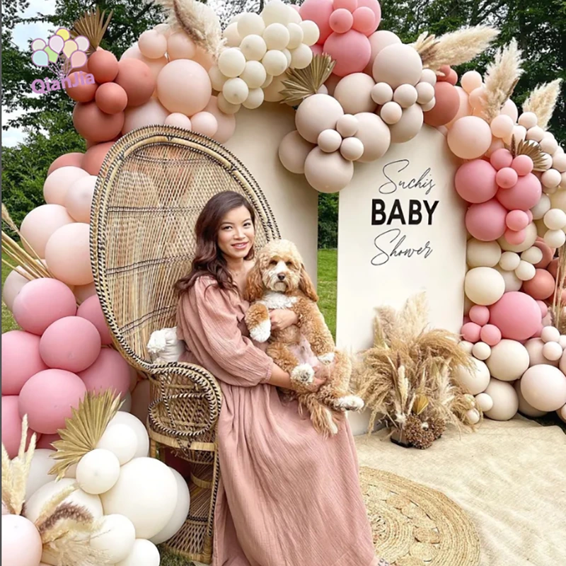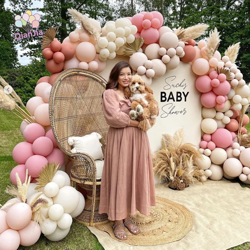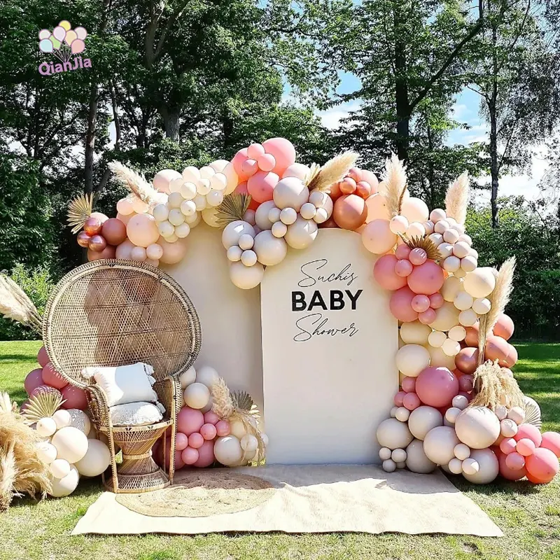 Vòm bong bóng trang trí bữa tiệc cho em bé mới nhất này, là sau khi nhiều nhà thiết kế bong bóng phối hợp màu bóng bay chung, là một loại khi bất kỳ sản phẩm trang trí địa lý và bữa tiệc nào, Màu đỏ hồng với bong bóng cao su cát trắng, báo trước sự khao khát tương lai và tìm kiếm trong một thành viên mới trong gia đình, bộ vòng hoa bóng bay cao su non giá rẻ này được sản xuất tại Trung Quốc, hiện chấp nhận do bóng bay.