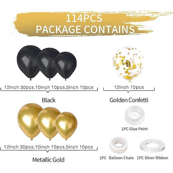 1. Mẫu miễn phí của bộ dụng cụ Balloon Arch màu đen và vàng cho một bộ