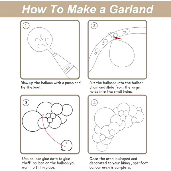 Chú ý & Cảnh báo:Vui lòng KHÔNG đổ đầy bóng bay và tránh bị cháy nắng, quá nóng, vật nhọn và ma sát quá mức. Kiểm soát lượng không khí được bơm vào mỗi quả bóng bay để đạt được kích thước quả bóng lý tưởng, hãy thưởng thức bữa tiệc bộ dụng cụ Balloon Garland Arch của bạn.