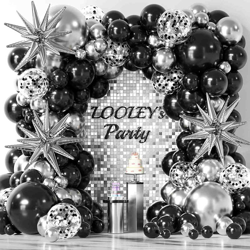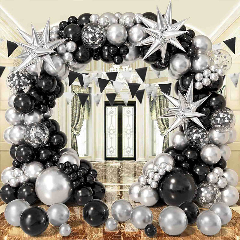 Bộ dụng cụ vòng hoa bóng bay màu đen và bạc |