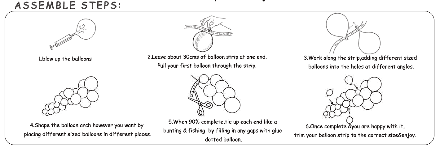 Bộ sản phẩm bao gồm đầy đủ các chất liệu như bóng bay theo chủ đề, dây chuyền bóng bay, điểm dán, phụ kiện, v.v. Người mua có thể lắp ráp ngay khi nhận được mà không cần ghép thêm. Nó rất cạnh tranh để tự sử dụng và bán lẻ.