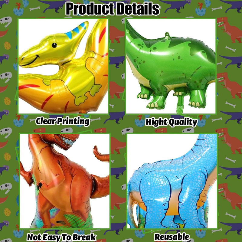Các quả bóng bay Khủng long hoạt hình được làm ở Trung Quốc được chế tạo từ lá nhôm chất lượng cao với ánh kim loại. Tất cả các quả bóng bay khủng long hoạt hình đều an toàn, bền, không độc hại và có thể tái sử dụng. Balloon Khủng long hoạt hình Jungle có một van tự niêm phong, không cần phải buộc các nút thắt, dễ thổi phồng và xì hơi, có thể được thổi phồng bằng không khí hoặc helium, chỉ cần lấp đầy 90% khí, bóng bay có thể được mở rộng hoàn toàn.