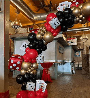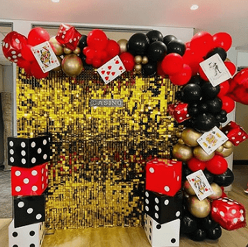 Chúng tôi đặc biệt tạo ra chế độ kép của vòm bóng bay theo chủ đề sòng bạc được tiêu chuẩn hóa và tùy chỉnh cho khách hàng của mình, chủ yếu được phản ánh trong việc kết hợp bảng màu cốt lõi, lựa chọn bóng bay bằng lá nhôm và các thành phần phụ kiện được nâng cấp.