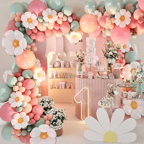Bộ vòng hoa vòm bóng bay này chủ yếu bao gồmcủabong bóng lá hoa cúcVàbong bóng cao su. Chúng tôi cũng cóđiểm keo bong bóng, sọc bóng bay và các phụ kiện khác. Bạn cũng có thể tạo thành một vòng hoa bóng bay cho bữa tiệc với các tấm nền, vải nền và cờ sinh nhật với các chủ đề tương ứng. Vòng hoa bóng bay hoa cúc này có nhiều kiểu dáng và màu sắc phong phú. Nó phù hợp cho bất kỳ dịp nào. Vòng hoa vòm bóng bay hình hoa cúc không chỉ thích hợp để trang trí sinh nhật đầu tiên của bé gái và sinh nhật của phụ nữ mà còn thích hợp để trang trí tiệc hoa cúc cho bé, đám cưới, tiệc cô dâu, v.v. Thích hợp để sử dụng trong nhà và ngoài trời. Với màu sắc tươi sáng và sự kết hợp ấn tượng, những đồ trang trí sinh nhật tuyệt đẹp này sẽ tạo ra một bầu không khí tuyệt vời mà các vị khách của bạn sẽ không thể nào quên.