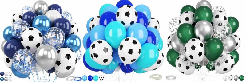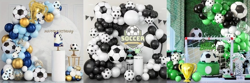 1. Khi bạn tùy chỉnh bộ bóng bay, bạn chỉ có thể sử dụng bóng bay màu xanh lá cây hoặc màu xanh lam và đặt một sốbong bóng in hình bóng đá, thì thành ra một bộ rất xinh xắn như hình dưới đây: