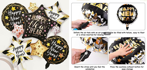 Bong bóng theo chủ đề năm mới là một phần thiết yếu của trang trí ngày lễ. Những quả bóng bay rực rỡ với màu đen và vàng này tạo nên nét lễ hội độc đáo, mang lại niềm vui và phong cách cho không khí Năm Mới. Kết cấu bền của chúng chống lại sự xẹp xuống, cho phép chúng vẫn đầy trong thời gian dài. Chúng có thể được thổi phồng bằngheli hoặc không khí, duy trì hình dạng ba chiều đầy đủ. Chúng hoàn hảo cho cả trang trí trong nhà và ngoài trời.