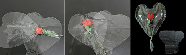 Bong bóng bobo hình trái tim được sản xuất tại Trung Quốc không chỉ có chất lượng tốt mà cách làm bộ sản phẩm này cũng rất đơn giản. Chỉ cần cắm những bông hoa hồng nhân tạo vào miệng bong bóng bơm hơi rồi thổi phồng lên. Bạn cũng có thể tự làm bộ bóng bobo hình trái tim theo ý tưởng của riêng mình. Bạn có thể đặt hoa hồng nhân tạo, lông vũ hoặc những viên kẹo nhỏ vào quả bóng bobo hình trái tim. Đồng thời, quả bóng bobo hình trái tim này có các lỗ nhỏ xung quanh, có thể luồn vào dây đèn hoặc các đồ trang trí khác để tạo hiệu ứng thị giác tuyệt vời.