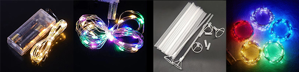 Dải đèn LED, ống nhựa, cốc bóng bay, lông vũ |
