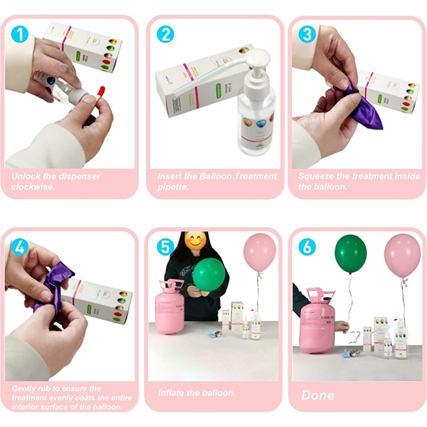 Bộ bảo vệ khinh khí cầu này được sản xuất tại Trung Quốc có sẵn với hai kích cỡ: 100ml và 500ml. Nó bao gồm một bộ phân phối bơm để ứng dụng dễ dàng. Một chai bảo vệ bóng bay helium 100ml có thể lấp đầy 65-70 quả bóng cao su 10 inch hoặc 12 inch, kéo dài thời gian bay của họ. Chất lỏng bảo vệ bóng bay helium này được thiết kế để cải thiện thời gian nổi của bóng cao su, đảm bảo rằng trang trí của bạn kéo dài hơn và duy trì sự hấp dẫn trực quan của nó trong suốt sự kiện. Các giải pháp nổi cực cao của chúng tôi cung cấp hiệu suất nổi cao vô song, cho phép bóng cao su nổi trong nhiều ngày. Bộ mở rộng helium này đảm bảo rằng việc trang trí bữa tiệc của bạn sẽ tiếp tục được sử dụng từ đầu đến cuối, giảm nhu cầu thay thế thường xuyên.
