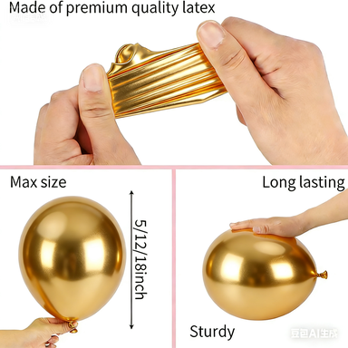 Bóng bay cao su chúng tôi cung cấp cho bộ vòng hoa bóng bay được làm từ 100% mủ cao su tự nhiên được nhập khẩu từ Đông Nam Á. Kích thước của chúng là 5 inch, 10 inch, 12 inch và 18 inch, bằng cách sắp xếp chúng theo các kích cỡ khác nhau, có thể tạo ra hiệu ứng xếp lớp hấp dẫn.