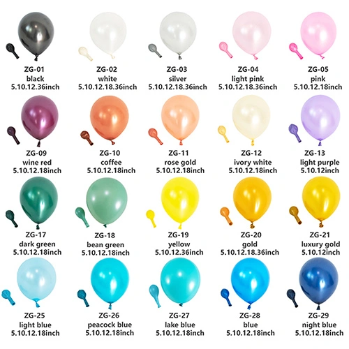Bóng ngọc trai:Với bề mặt mềm mại, mịn màng và bột ngọc trai lung linh, những quả bóng bay này có màu sắc dịu nhẹ và rực rỡ nhất, khiến chúng trở nên lý tưởng để trang trí các sự kiện cao cấp như đám cưới và Ngày lễ tình nhân.