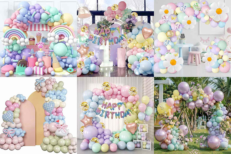 1. Phong cách: Nhiều lựa chọn hỗn hợp có thể được thực hiện để phù hợp với các nhu cầu khác nhau. Chúng bao gồm các bộ màu đơn, bộ màu gradient và bộ theo chủ đề. Một sự pha trộn của bóng bay và bóng bay latex có thể làm cho cái nhìn nhiều lớp hơn và bắt mắt nhiều hơn.