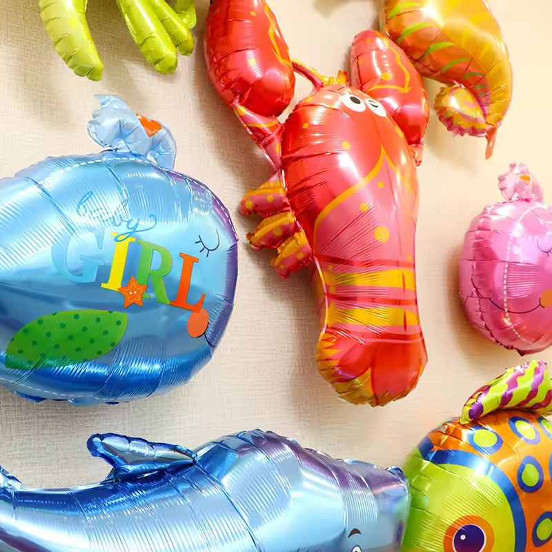 Bong bóng lá sinh vật biển là sản phẩm bóng bay mới được nhà máy sản xuất bóng bay NiuN® phát hành. Bong bóng lá sinh vật biển này có nhiều màu sắc khác nhau. Có hơn 50 loại bóng bay giấy bạc như cá heo, tôm hùm, cá hề, cá ngựa, cua, v.v. Nếu bạn có các kiểu bóng bay giấy bạc sinh vật biển khác mà bạn muốn mua và hình ảnh của chúng tôi không bao gồm chúng, bạn có thể gửi cho chúng tôi hình ảnh hoặc thiết kế. Chúng tôi rất vui khi được tùy chỉnh bong bóng giấy bạc độc quyền cho bạn. Chúng tôi tin rằng cho dù đó là một bữa tiệc, lễ kỷ niệm hay bất kỳ dịp nào khác, những quả bóng bay bằng giấy bạc hình sinh vật biển đầy màu sắc và đáng yêu này có thể tạo thêm bầu không khí đặc biệt cho sự kiện của bạn. Nhà máy sản xuất bóng bay NiuN® cam kết mang đến cho khách hàng những sản phẩm và dịch vụ chất lượng tốt nhất. Chúng tôi tin rằng thông qua các dịch vụ tùy chỉnh của mình, bạn sẽ có thể trang trí theo chủ đề biển độc đáo để làm cho sự kiện của bạn trở nên đáng nhớ hơn.
