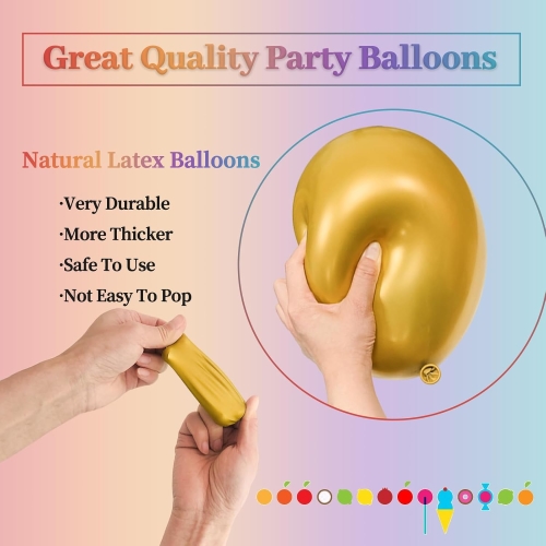 Bộ bóng bay nhỏ màu kim loại chất lượng cao sử dụng mủ cao su dày, có độ đàn hồi cao. Chúng có bề mặt bóng như gương. Ánh sáng phản chiếu từ chúng. Nó tạo ra một hiệu ứng kim loại sáng bóng, phong phú. Bóng bay cao su thông thường trông phẳng và mờ. Những quả bóng bay này có cảm giác cao cấp. Họ cũng thu hút sự chú ý ngay lập tức.