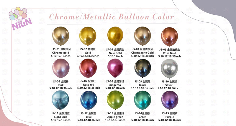 Màu sắc: Bóng bay kim loại có 15 màu. Bạn có thể trộn chúng một cách tự do để có được hiệu ứng hình ảnh vô tận.