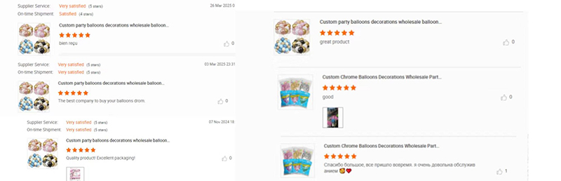 Bộ nhỏ bóng bay màu kim loại 12 inch có hai lựa chọn. Bạn có thể chọn gói nhỏ gọn 12 miếng hoặc gói lớn 30 miếng. Gói 12 món rất phù hợp cho các bữa tiệc nhỏ. Nó cũng phù hợp với việc trang trí bàn và kết hợp quà tặng. Nó cung cấp cả giá trị tốt và sử dụng thực tế. Gói 30 miếng phù hợp với nhu cầu lớn hơn. Đó là lý tưởng cho việc trang trí tường và xây dựng vòm bóng bay. Bạn có thể chọn đúng dựa trên kịch bản mua hàng thực tế của bạn. Chúng tôi có hơn 10 năm kinh nghiệm bán hàng. Gói 12 miếng có nhiều tình huống áp dụng hơn. Nó phổ biến hơn đối với khách hàng.