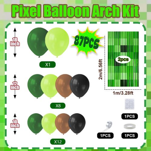 Lấy cảm hứng từ trò chơi điện tử minecraft, bộ vòm bóng bay minecraft bền bỉ này kết hợp nhiều sắc thái khác nhau của bóng bay pixel màu xanh lá cây với phông nền bữa tiệc theo chủ đề minecraft để tạo ra vẻ ngoài nhiều lớp vui tươi thu hút sự quyến rũ của các trò chơi phiêu lưu cổ điển.