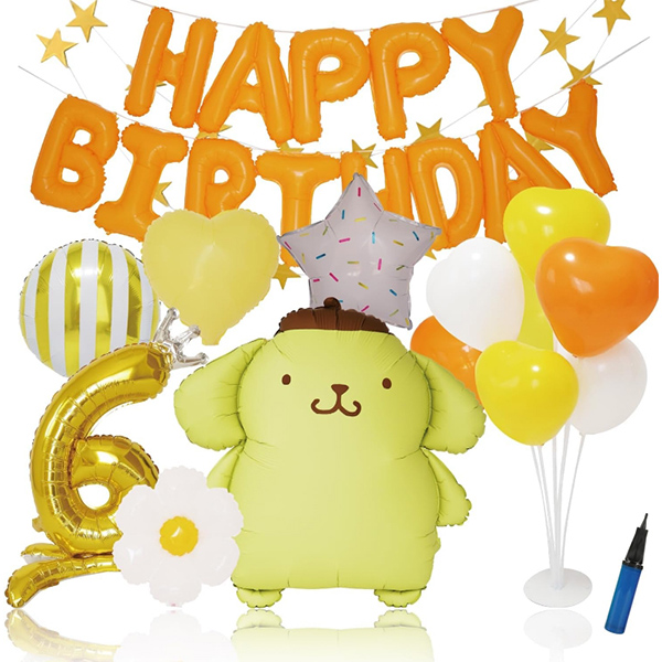 Nhà máy Bóng bay NiuN® cũng kết hợp một bộ tiệc dành cho bong bóng cao su in PomPomPurin, bao gồm biểu ngữ chúc mừng sinh nhật, phần trang trí bánh, quả bóng cao su in PomPomPurin, phần trang trí bánh cupcake, v.v. Hình ảnh trên những đồ trang trí này có nhiều màu sắc và sử dụng công nghệ in thân thiện với môi trường để thu hút sự chú ý một cách hiệu quả và nâng cao sức hấp dẫn thị giác của bữa tiệc. Bộ đồ trang trí này được thiết kế dễ dàng lắp ráp, không tốn nhiều thời gian, bạn có thể vui chơi cùng trẻ em. Nó có thể dễ dàng treo biểu ngữ sinh nhật trên trần nhà hoặc tường, biểu ngữ có nhiều màu sắc và bóng bay dễ thổi phồng. Các trang trí bánh được làm rất đẹp mắt. Với những đồ dùng tổ chức tiệc sinh nhật này, bạn có thể bắt đầu một lễ kỷ niệm sinh nhật tuyệt vời ngay lập tức.