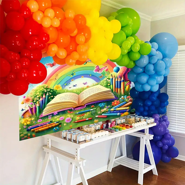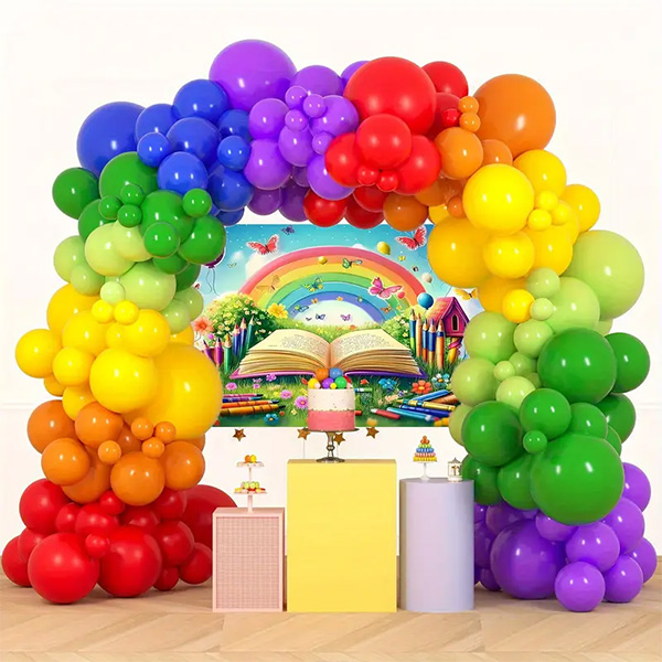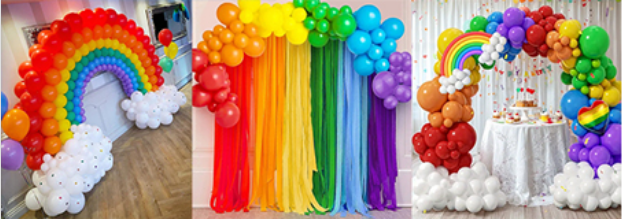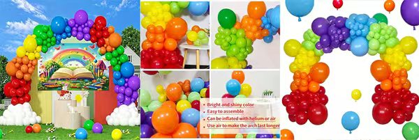 NuN tuyệt đẹpĐồ trang trí bữa tiệc theo chủ đề cầu vồng có bảy màu sắc rực rỡ của bóng bay cầu vồng, tạo thêm điểm nhấn màu sắc cho bữa tiệc của bạn. Sử dụng bộ vòm bóng bay cầu vồng này để tạo ra vòm bóng bay cầu vồng rực rỡ, phông nền, vật trang trí trung tâm và lối vào cho bữa tiệc theo chủ đề cầu vồng của bạn.
