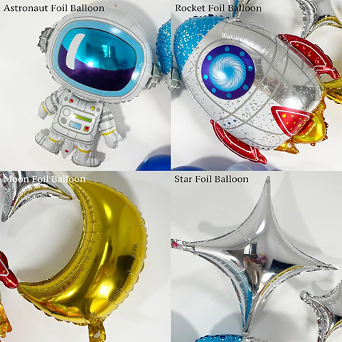 Bong bóng lá có hình phi hành gia, tên lửa, đĩa bay và các kiểu dáng khác, điều này làm tăng thêm sự thú vị và thực tế cho vòng hoa này.