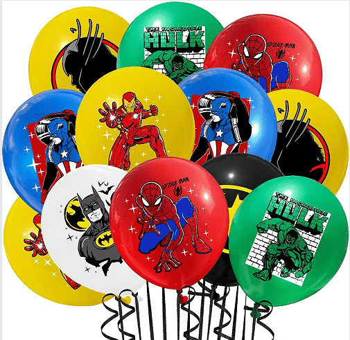 Chúng tôi cung cấp dịch vụ in bóng bay cao su 5 inch, 10 inch, 12 inch, 18 inch và 36 inch, sử dụng loại mực thân thiện với môi trường để in nhiều mẫu theo chủ đề Người Nhện khác nhau.