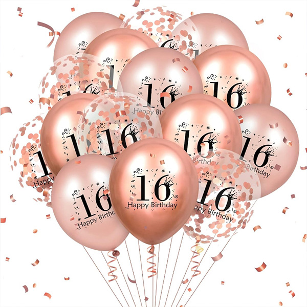 Bong bóng cao su in hình sinh nhật lần thứ 16:Bong bóng cao su in hình sinh nhật lần thứ 16 do nhà máy chúng tôi sản xuất rất phù hợp cho các bữa tiệc sinh nhật lần thứ 16 và các dịp kỷ niệm 16 năm. Chúng tôi có nhiều màu sắc để lựa chọn. Chúng tôi hiển thị vàng hồng, vàng đen, vàng tím, xanh và đen. Chúng tôi cũng có thể tùy chỉnh 16 quả bóng bay in theo yêu cầu của bạn. Chúng là những đạo cụ làm nền tuyệt vời để chụp ảnh và có thể tạo thêm niềm vui cũng như bầu không khí năng động cho những cảnh này. Quả bóng in này có thể chứa đầy không khí, khí heli hoặc thậm chí là nước và không dễ bị hư hỏng hoặc đổi màu. Là vật trang trí tuyệt vời cho tất cả các loại tiệc sinh nhật lần thứ 16 hoặc họp mặt gia đình. Sử dụng quả bóng cao su này với các đồ trang trí và đồ trang trí cho bữa tiệc khác để có thêm niềm vui.