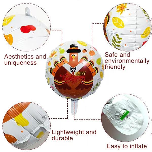 Bong bóng lá Lễ Tạ ơn là một phần quan trọng của trang trí ngày lễ. Họ có nhiều yếu tố mùa thu và màu kim loại sáng. Họ mang lại niềm vui và sự ấm áp cho bầu không khí Lễ Tạ ơn. Bong bóng lá Lễ Tạ ơn được làm từ vật liệu lá chất lượng cao. Kết cấu mạnh và không dễ bị rò rỉ. Họ có thể ở đầy đủ trong một thời gian dài. Chúng có thể được lấp đầy bằng helium hoặc không khí. Họ luôn có thể nhìn ba chiều và đầy đủ. Chúng rất phù hợp cho cả trang trí trong nhà và ngoài trời.