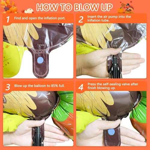 Những quả bóng bay bằng giấy bạc Lễ tạ ơn sẽ rất dễ thổi phồng và bịt kín. Bạn có thể sử dụng bơm thủ công hoặc bơm điện để bơm phồng, sau đó dán kín bằng keo tự dính ở đầu mỗi quả bóng bay. Sau khi bịt kín, quả bóng sẽ trở nên chắc chắn.