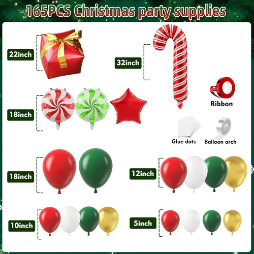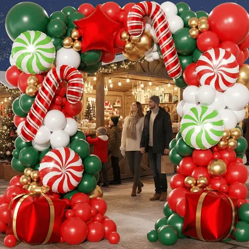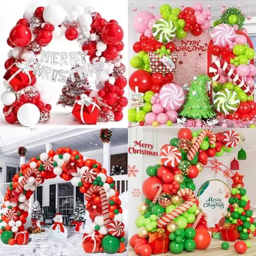 Vòm bóng Giáng sinh đi kèm vớibong bóng cao su chất lượng cao và đầy màu sắcvà bong bóng giấy bạc. Bóng bay cao su chúng tôi cung cấp được làm từ 100% mủ cao su thô được nhập khẩu từ Đông Nam Á. Là nguyên liệu thô mà chúng tôi sử dụng và mực in thân thiện với môi trường mà chúng tôi sử dụng, bóng bay hoàn toàn thân thiện với môi trường và vô hại với trẻ em. Màu sắc của bóng bay chủ yếu là đỏ và xanh lá cây, tượng trưng cho Giáng sinh. Để thêm phần trang trí, chúng tôi cũng đưa vào những quả bóng bay màu vàng. Tổng thể phong cách của vòm bóng Giáng sinh vui vẻ, hấp dẫn và tràn đầy năng lượng.